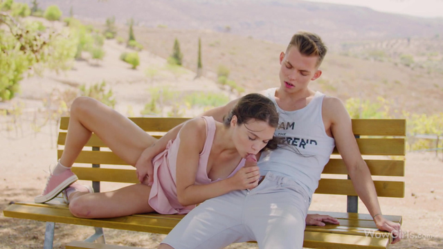 WOWGIRLS Amazingly hot girl Elizabeth T rides a hard cock on the bench in the park