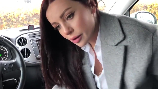 Paramour sucks dick in the car and swallows cum